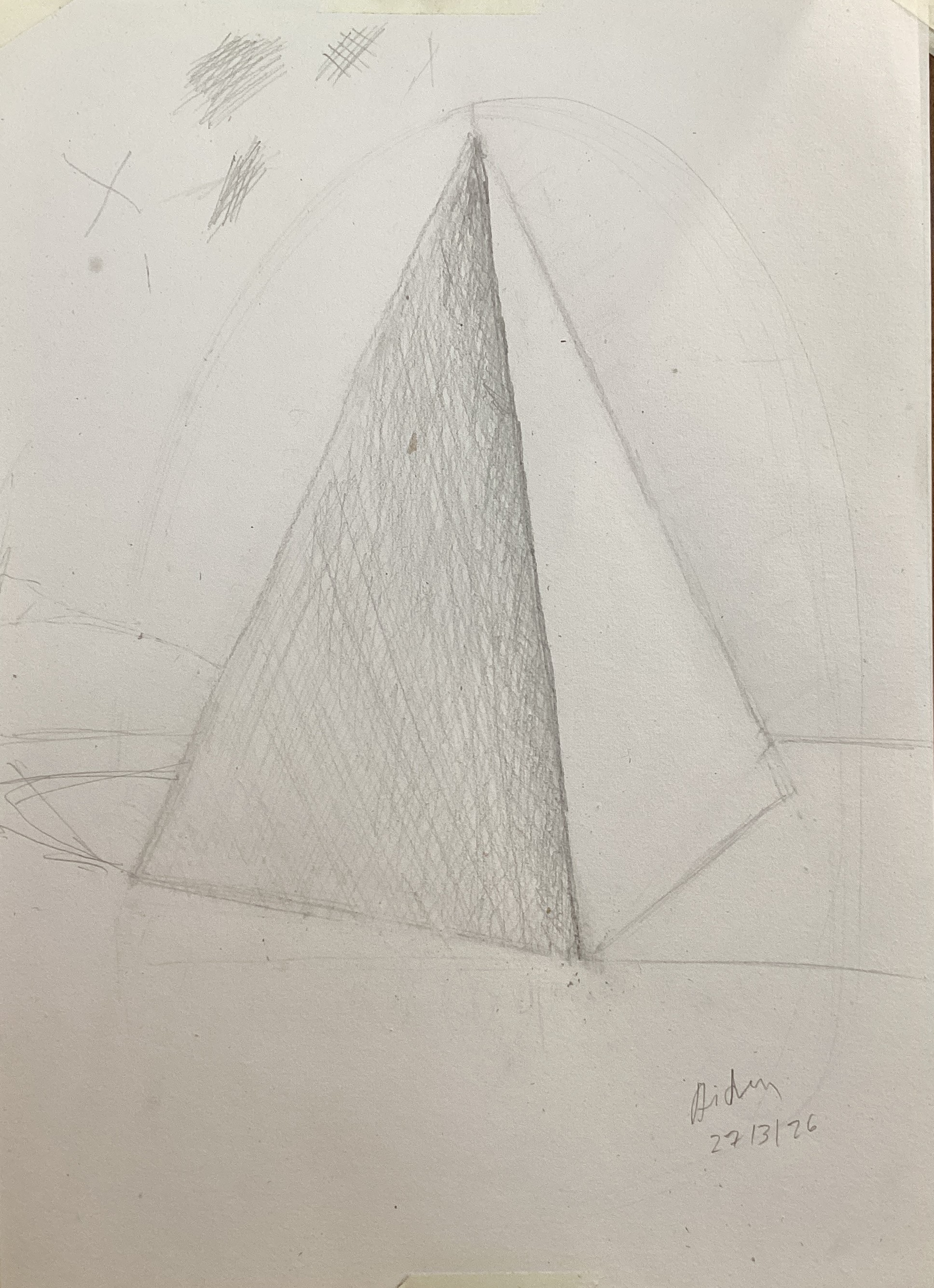 Aiden continued with the pyramid drawing. In this session, his measuring and drawing improved. We will continue to complete this exercise in the next lesson.