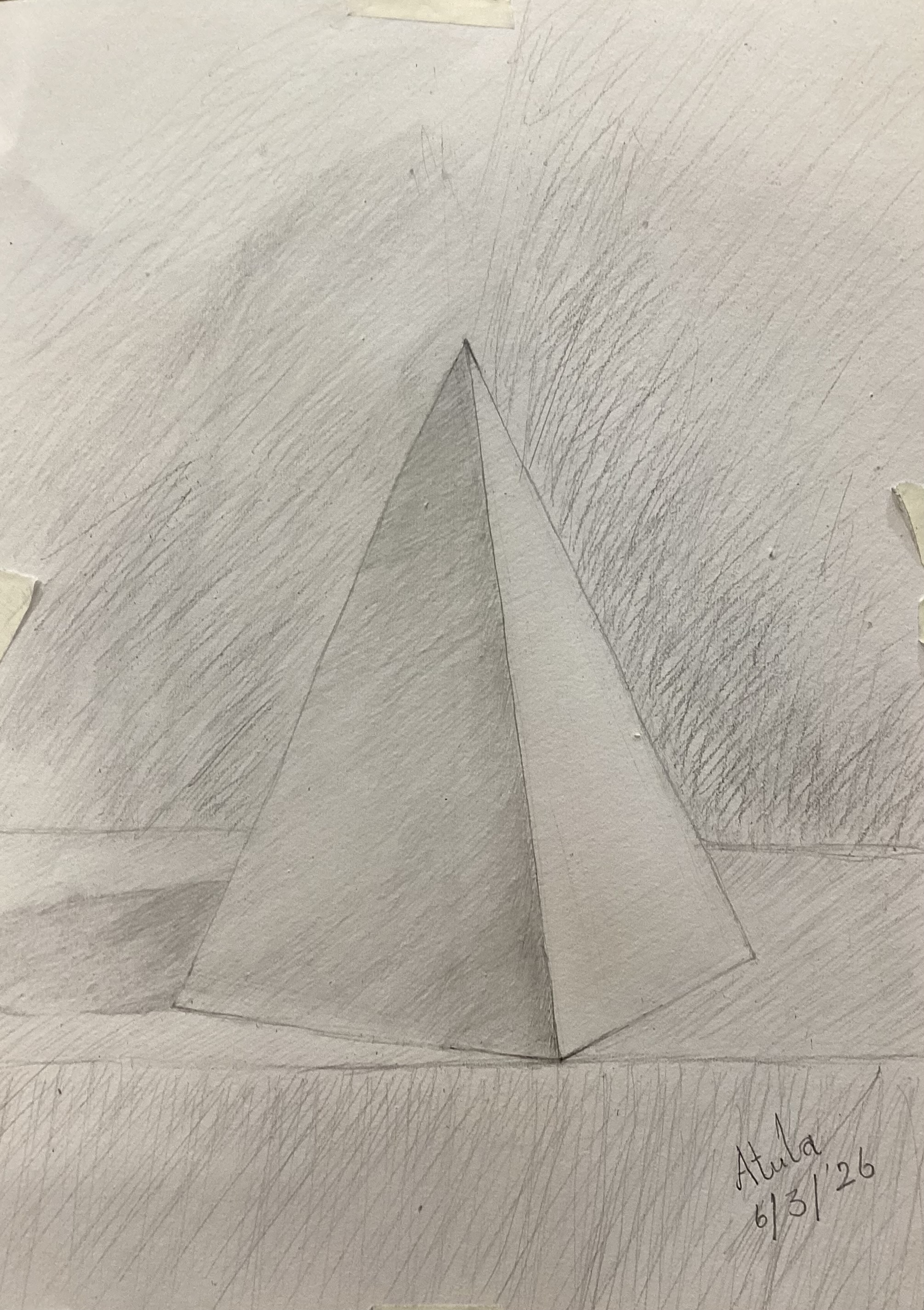 The second practice ò Pencil basic course, Atula finished a simple object: piramid , very good result