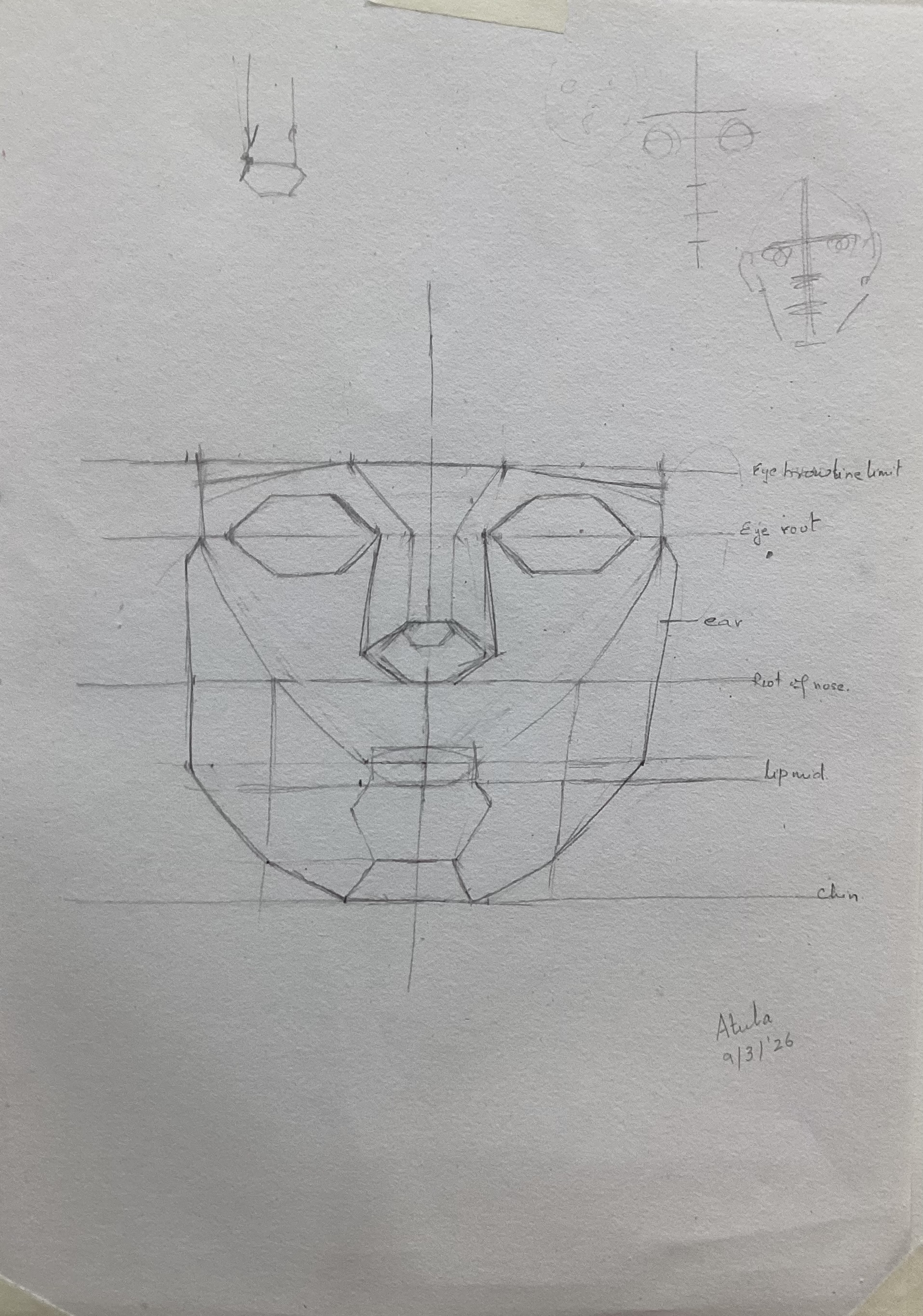 Atula has started learning facial proportions, and measuring proportions has been quite challenging.