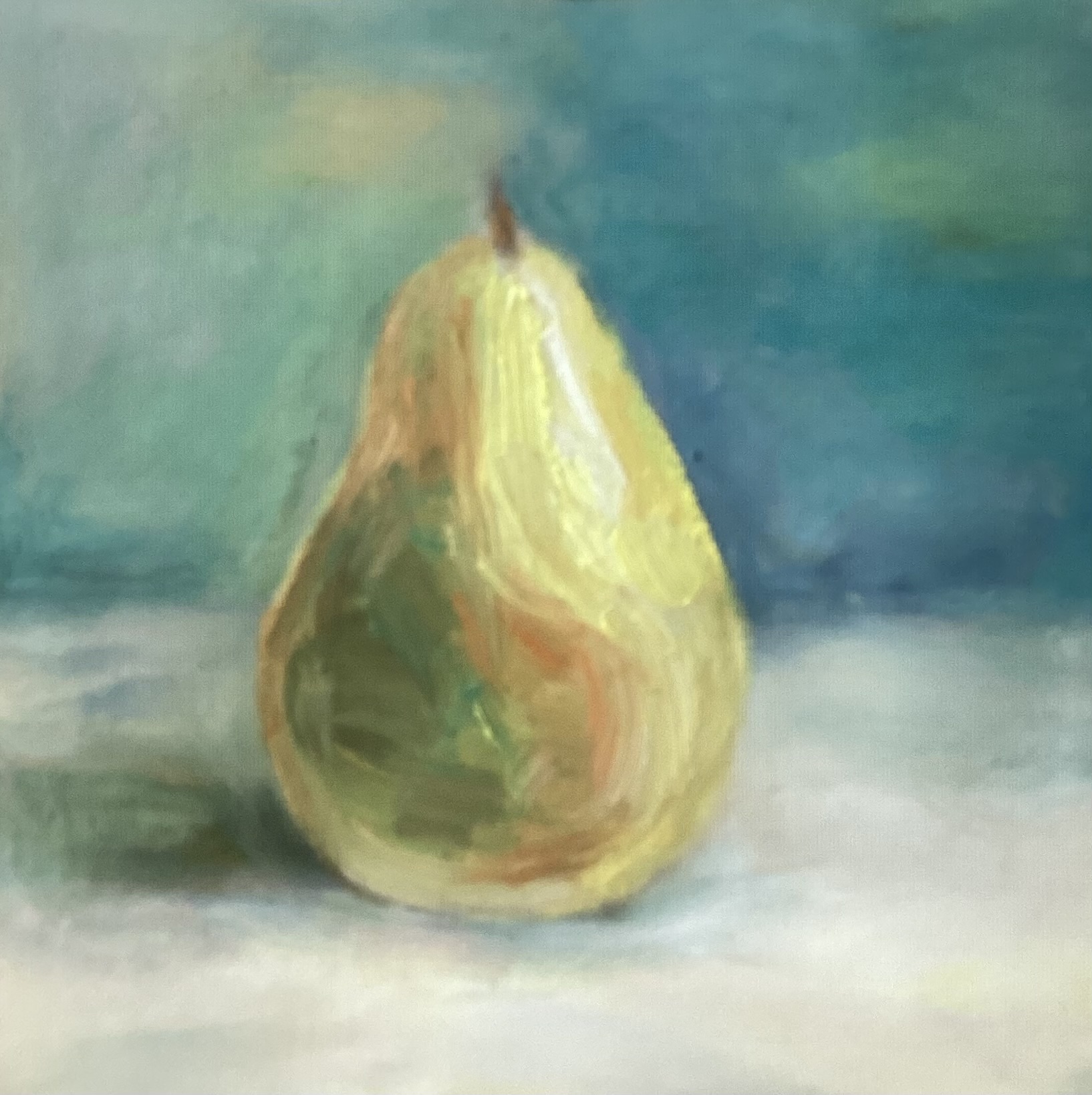 Continuing to explore the color palette and describe each object in more detail, while also beginning to pay attention to the background.