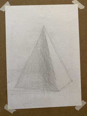 Drawing a pyramid: She learned how to compare her drawing with the model by stepping back and looking from afar.