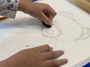For her final sessions, we worked on a still life drawing of a teddy bear using pencil, then painted it with gouache. Bethany has developed a good eye for comparing proportions, and her progress has been really impressive. The pencil lines are now confident.