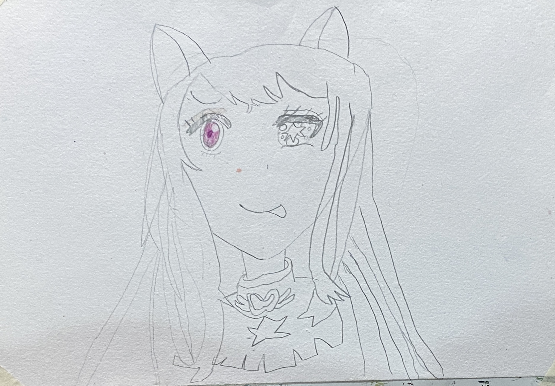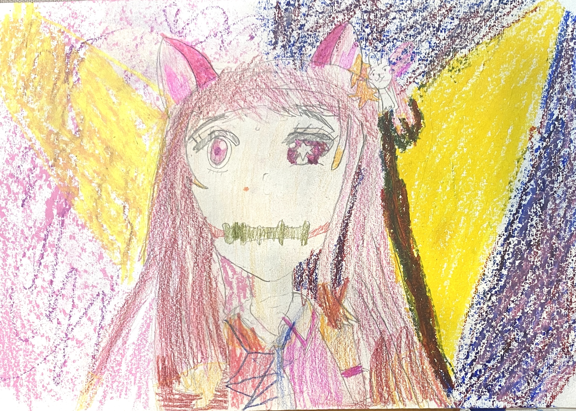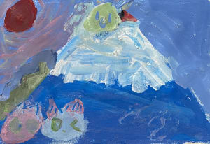 However, the final piece included too much details, which made the overall composition feel busy. This is both Emma’s strength and weaknesses. Her rich imagination brings many exciting ideas, but learning to simplify will help her paintings feel clearer and more balanced.