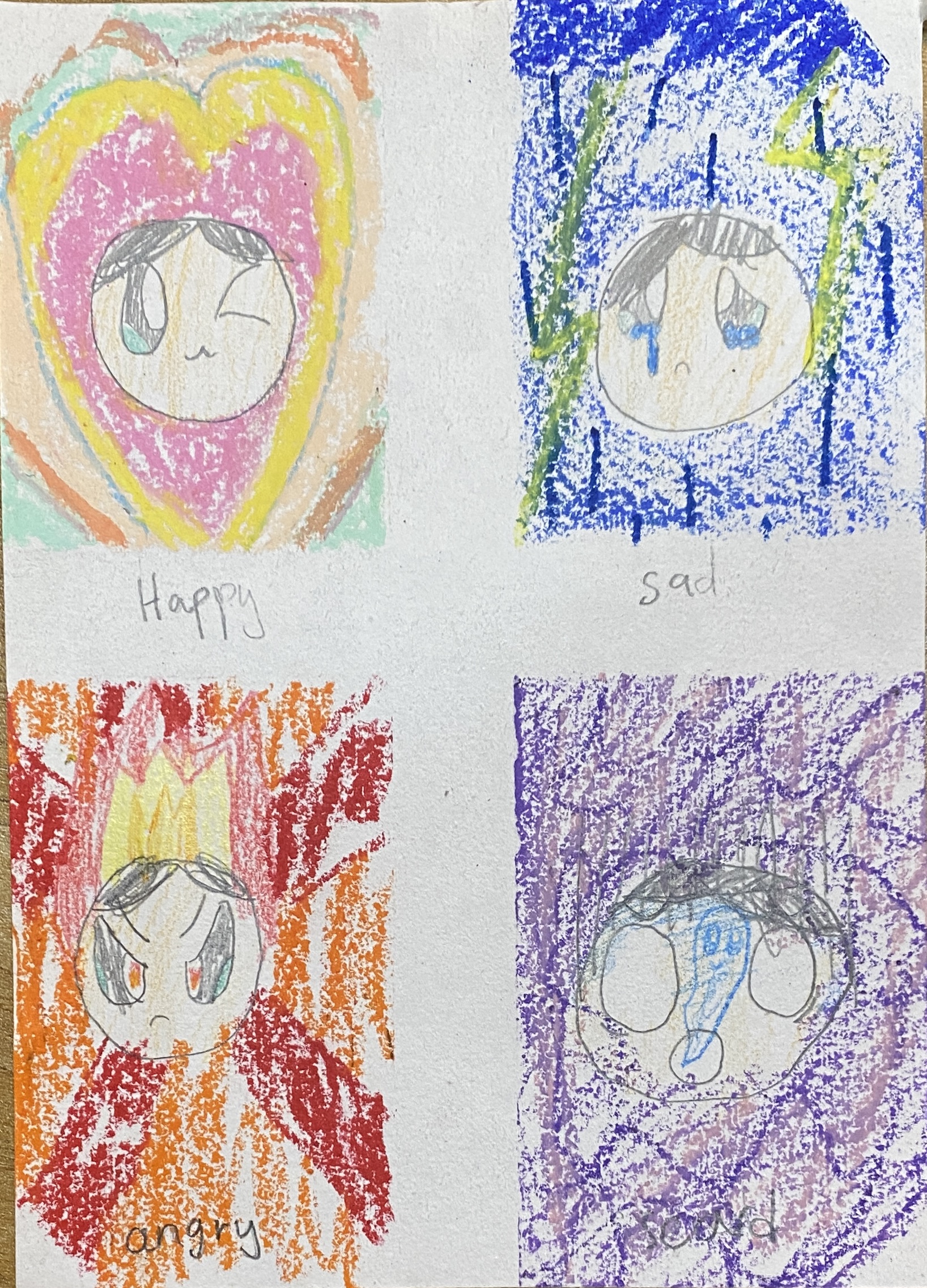 Emma learned about Fauvism and the expressive use of color by Henri Matisse. We began with a small exercise where Emma was given four different feelings and chose colors that she personally associated with each one.