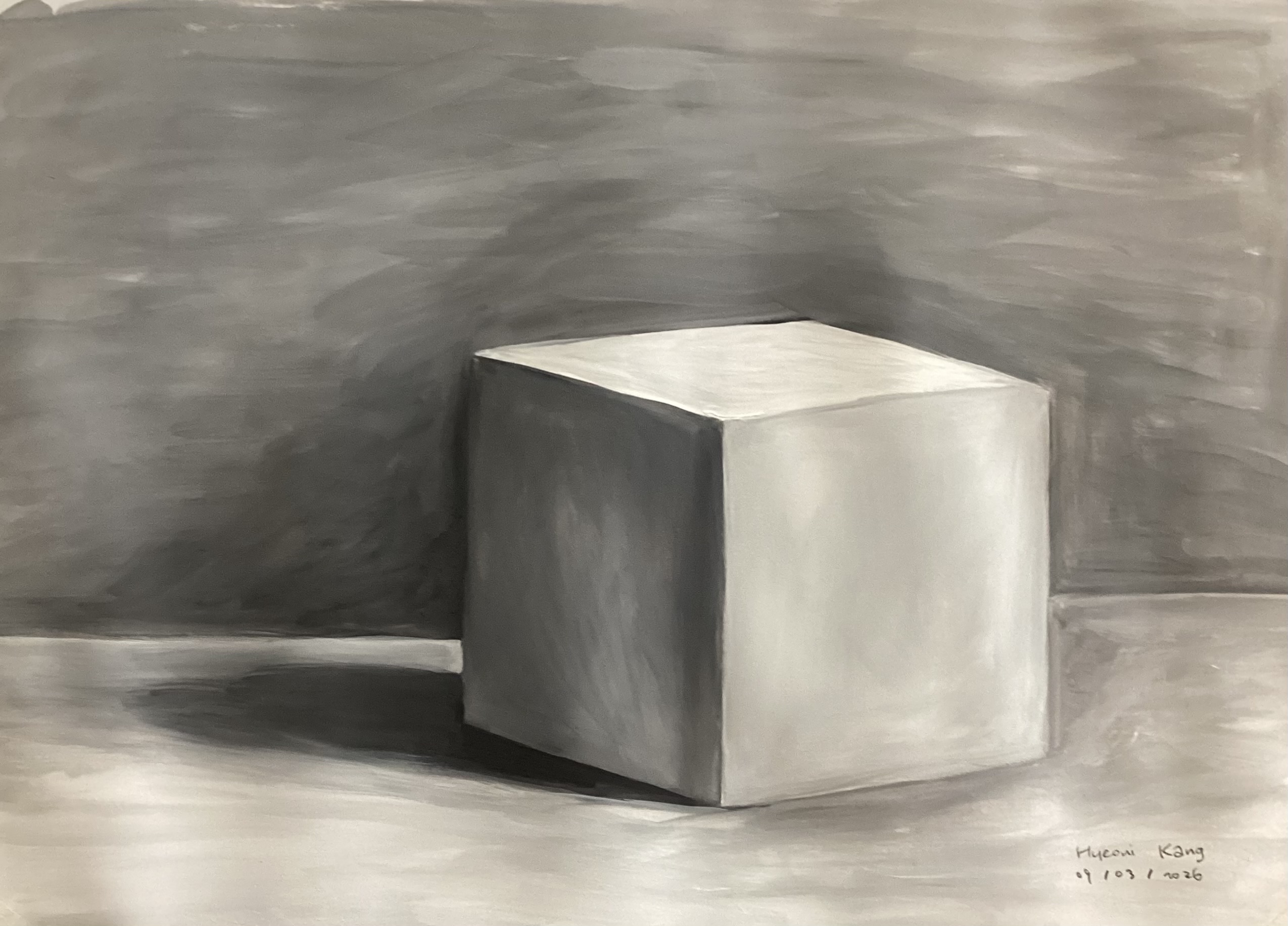 Hyeony began experimenting with oil painting on paper to become more familiar with the medium.