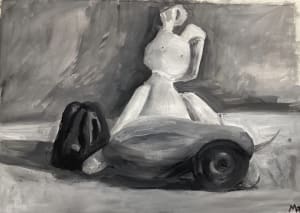Continuing with the still life painting. Maria is still using colors with fairly high saturation. In the chicken study, she seems to be gaining good control of oil paint.In the next session, we will continue working on this still life.