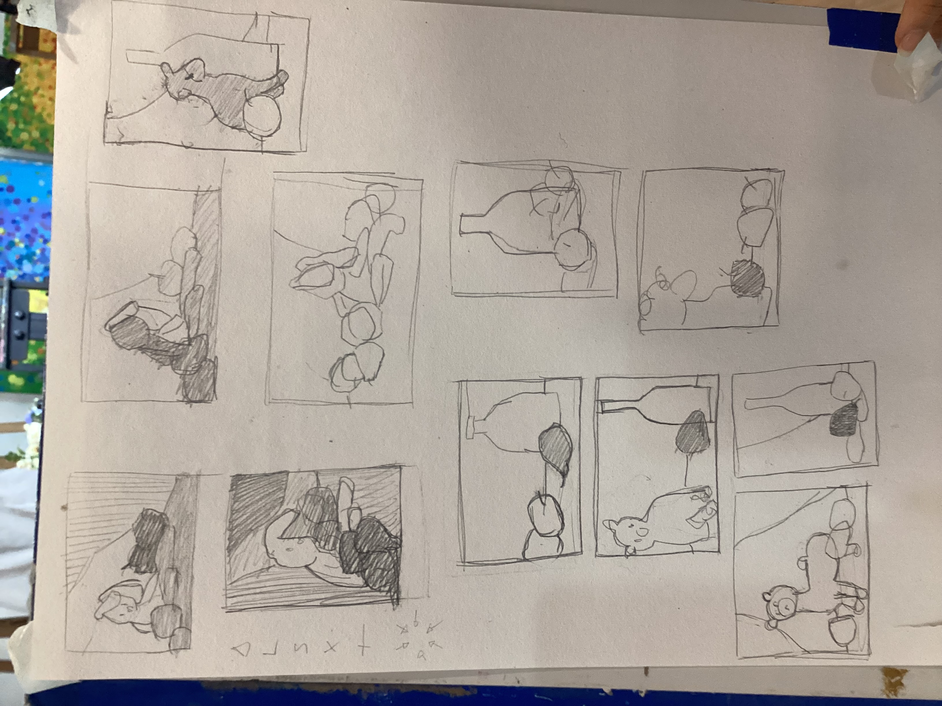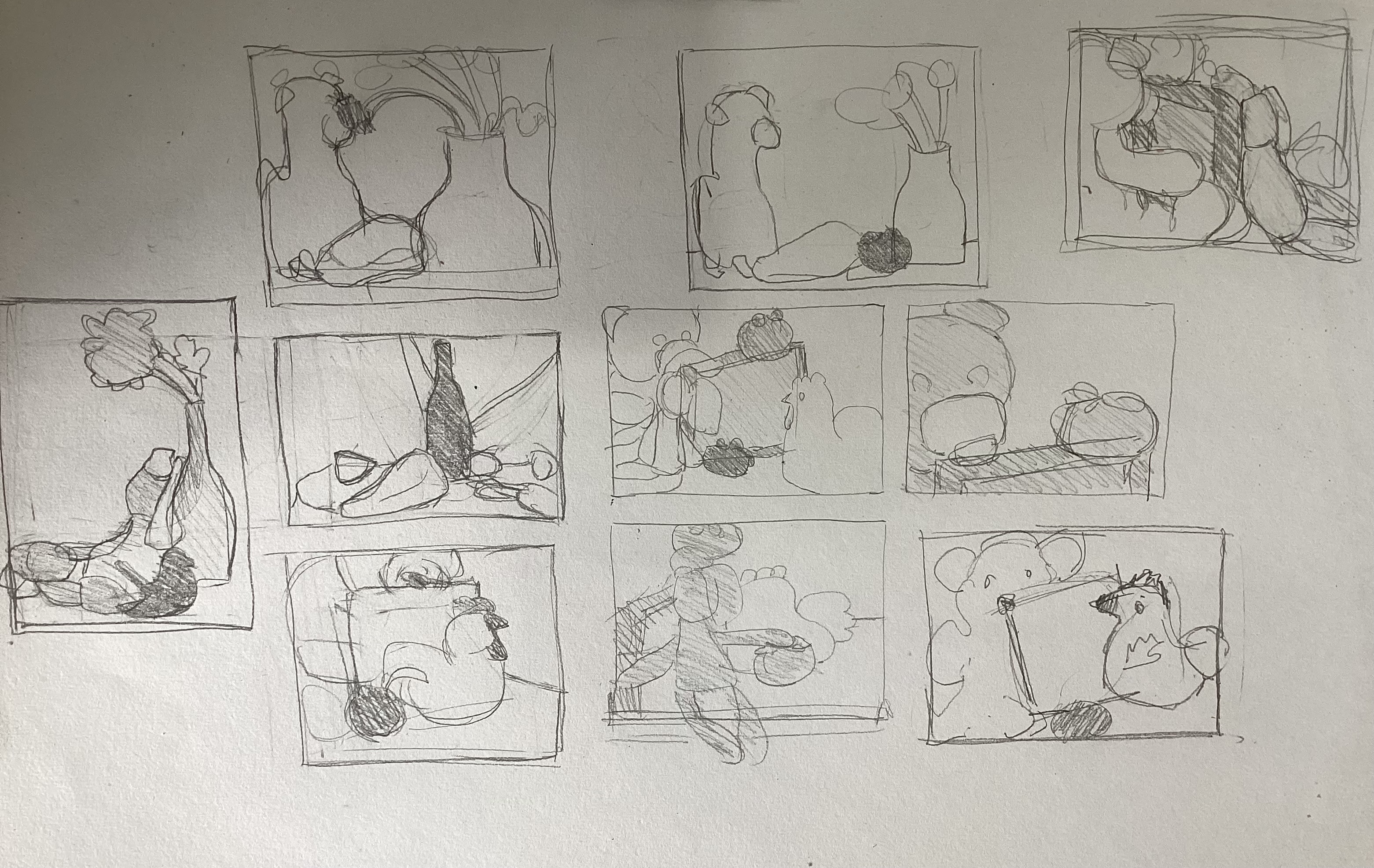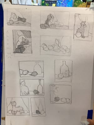 Làm bố cục với tĩnh vật cho sẵn, chỉ cho ảnh, không có vật thể thật. Có tiến bộ, tuy nhiên vẫn mất kiểm soát bố cục và cần sáng tạo hơn.
