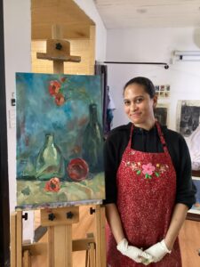 Niara concluded her art journey with us through a delightful oil painting session. In just one class, she captured the structure of a plaster head with impressive accuracy and expression.We hope she continues to pursue art as she returns to Germany and begins a new chapter in life.